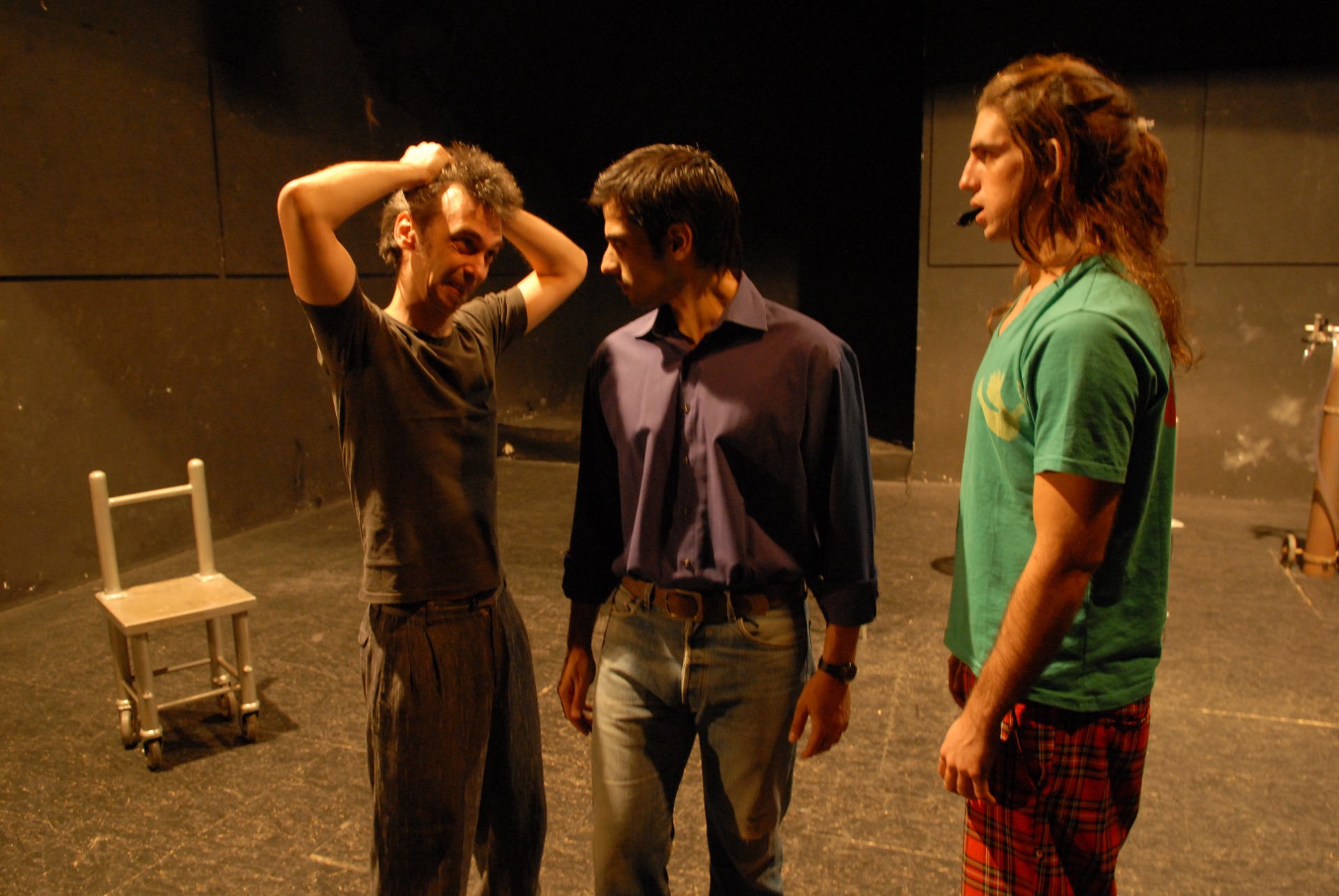 tres actores, que exponen -desde un espacio íntimo,