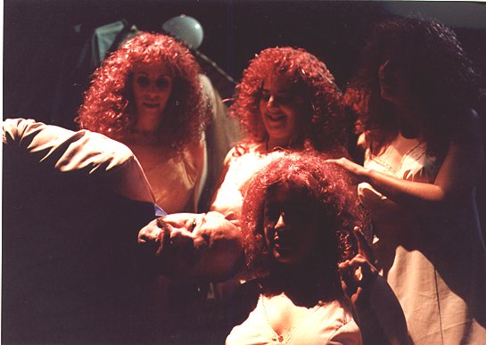 Una mujer de vestido verde y pelo colorado dice: " Me llamo Analía cumplo a ños, años, y años, de vasitos de plástico, de jarritas de plástico, de mantelitos, de galletitas, de papitas pl ásticas.... De ese lado de la guirnalda, el vacío. De éste otro lado yo cumplo años." La obra entonces en su juego transforma una "ceremonia social", el cumpleaños, en una "ceremonia teatral" donde la excusa de un festejo sirve para hablar del amor, del miedo a la soledad, en definitiva de la condición del ser femenino.